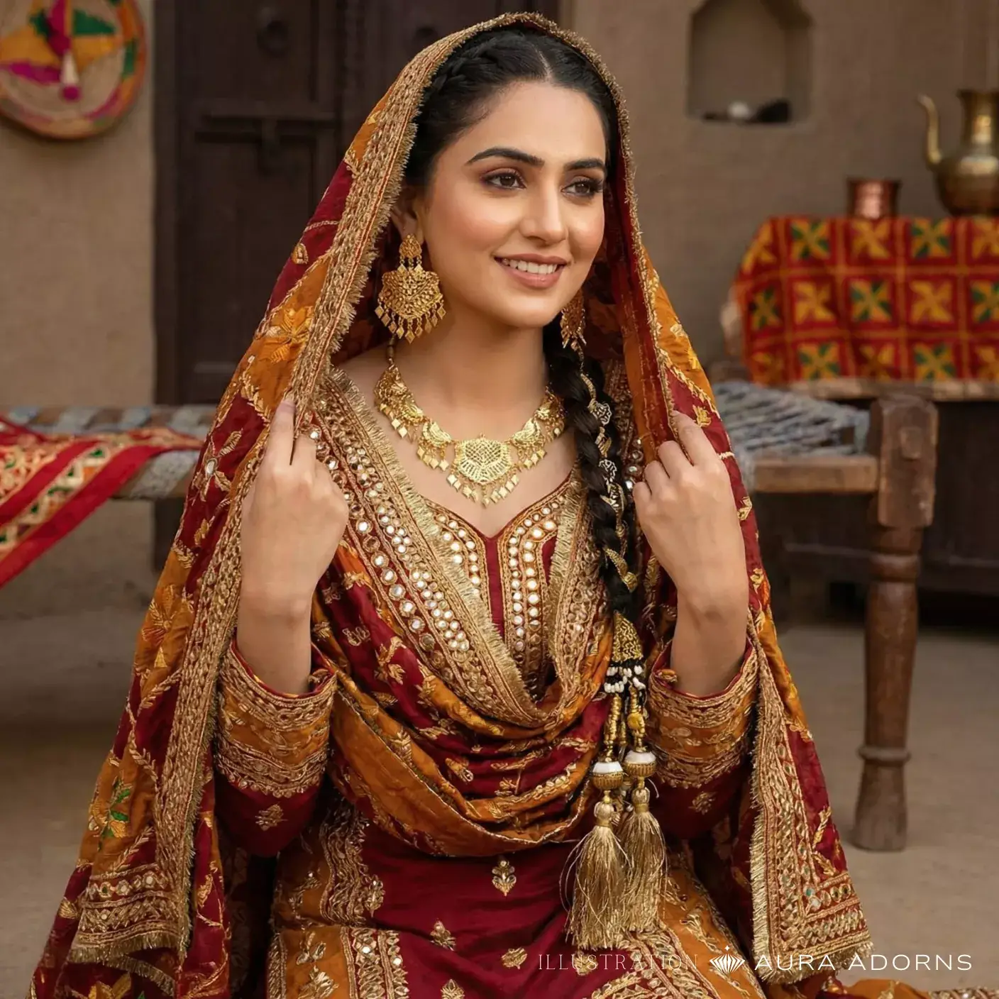 Elevate your ethnic style with these necklace and earrings , featuring intricate gold-toned cutwork and delicate dangling accents. Its graceful, traditional design makes it a perfect match for festive and wedding ensembles.